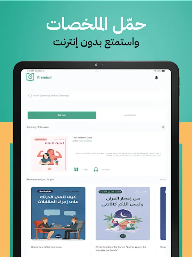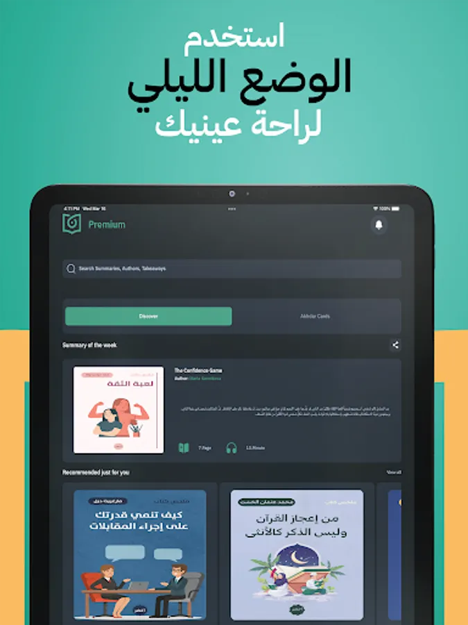 All book summaries are available on green in the form of a written text and audio recording; Which makes it convenient for you to gain knowledge while you are training in the gym, in the car, or while doing housework and other activities.. Green will be with you anytime and anywhere.