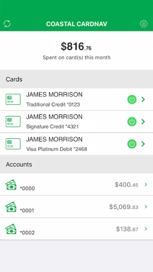 Coastal CardNav puts you in control of your Coastal debit and credit cards. With Coastal CardNav, you can turn your cards on and off, control where your cards can be used, receive alerts, set spending limits, and manage transactions. Download the Coastal CardNav app to manage your cards today!