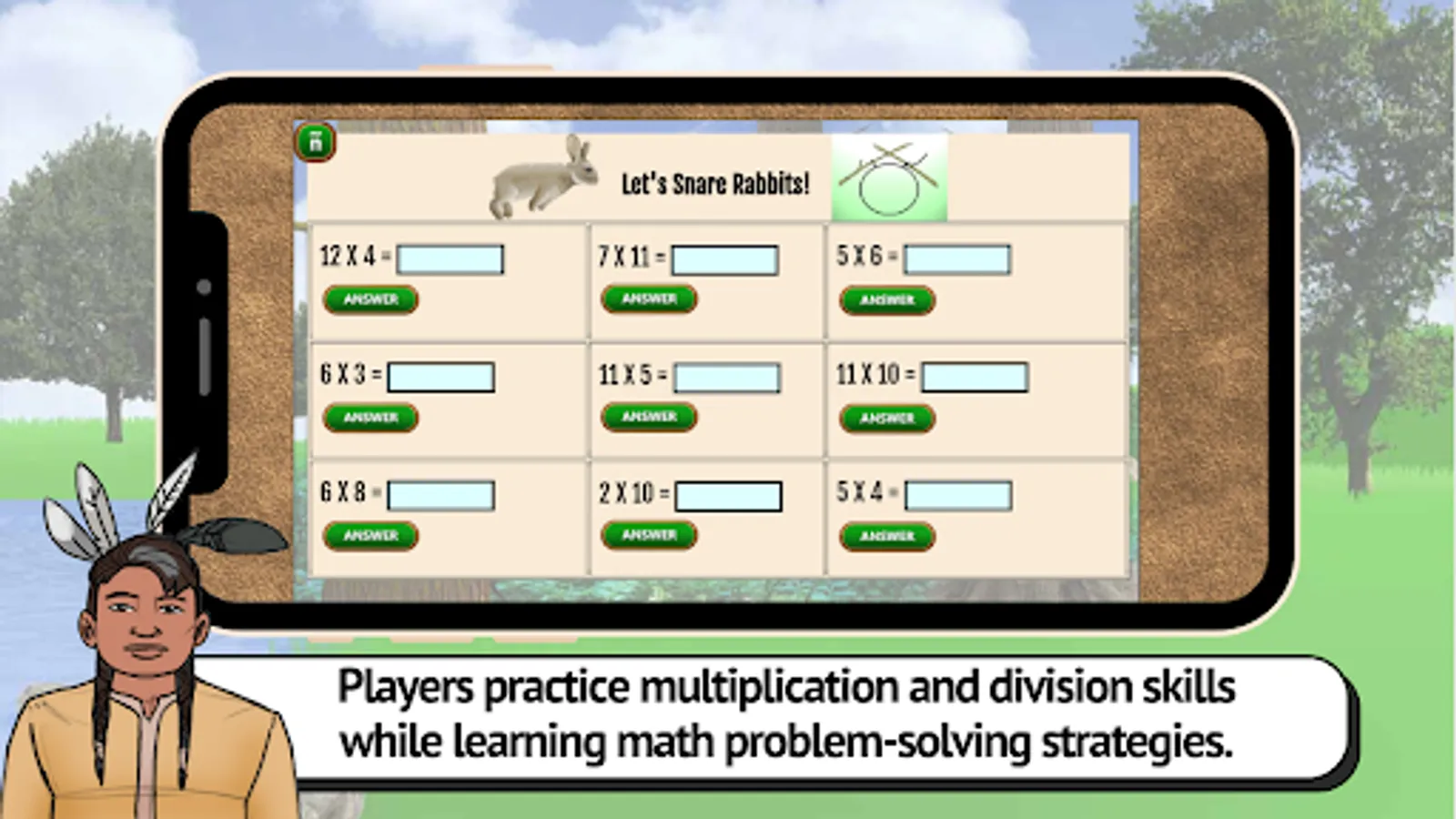 📚Packed with videos and activities, players practice multiplication and division skills while learning math problem-solving strategies. They’ll also be introduced to Native American history. Earn points by solving math problems and answering social studies questions in the village-building simulation game.