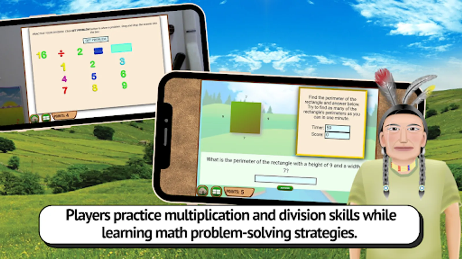 📚 In this Great Plains-themed game, players practice multiplication and division skills while learning math problem-solving strategies. They’ll also be introduced to Native American history.
