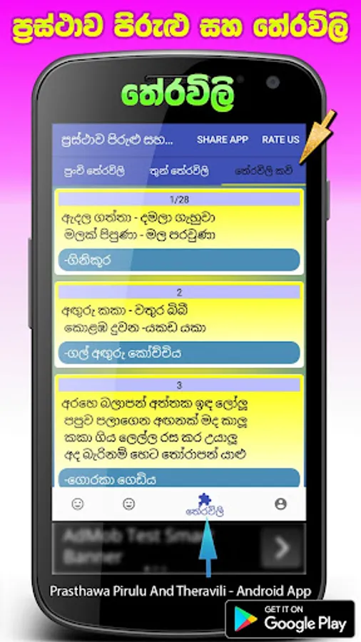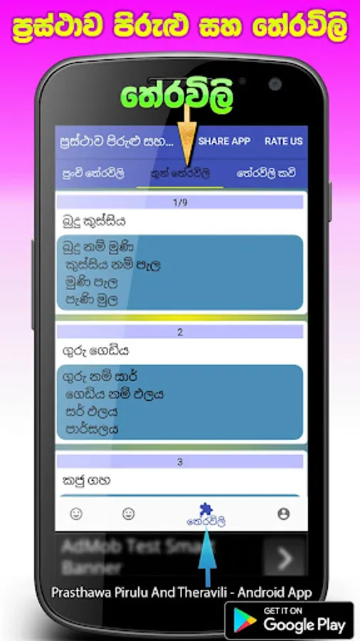 The app includes appends and riddles. It's an important and important one for your child. Let your child read this too. Let's read this 5 star ratings by giving us your worthwhile comment on this Prasthawa Pirulu and Theravili app. Also let your friends know about this app. Share the share button in the software.