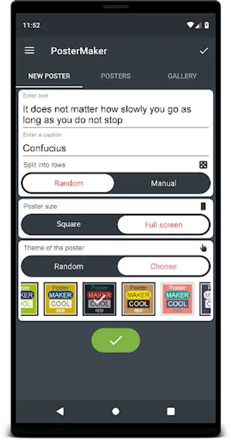 You just need to enter text, select a color theme and press the button, the rest will be done by the program itself.