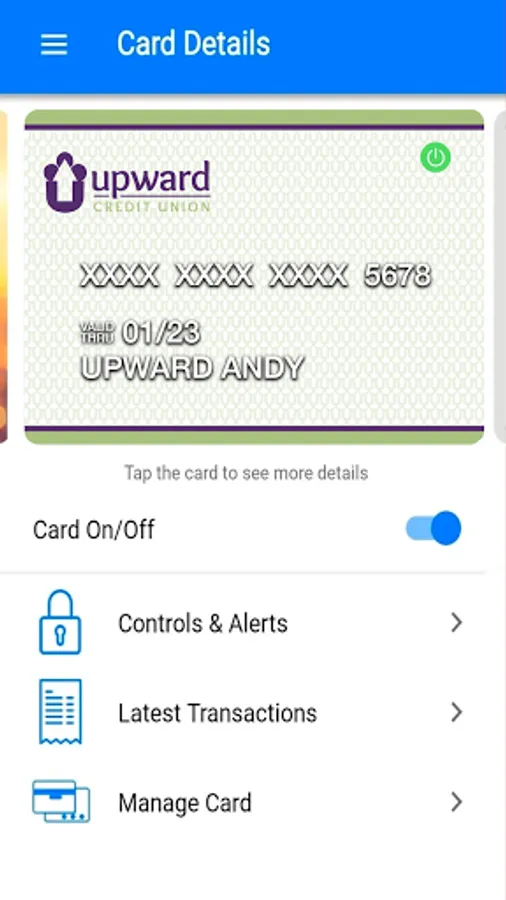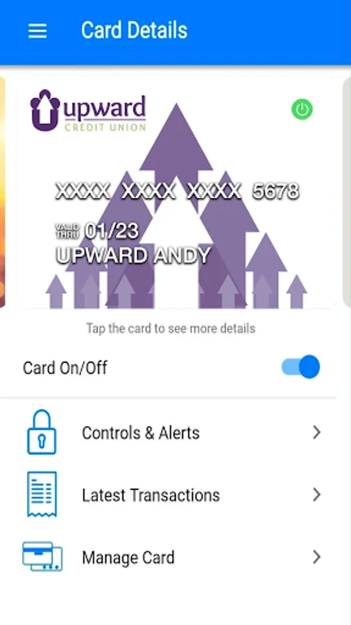 Upward Credit Union's CardNav - CardControl puts you in control of your debit and credit card. Upward CardControl helps you protect your debit and credit cards by sending you transacation alerts and giving you’re the ability to define when, where and how your cards are used. Simply download the Upward CardControl app to your smartphone, then customize your alert preferences and usage settings to monitor and manage your cards.