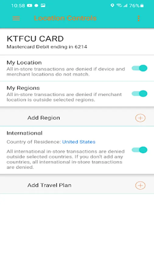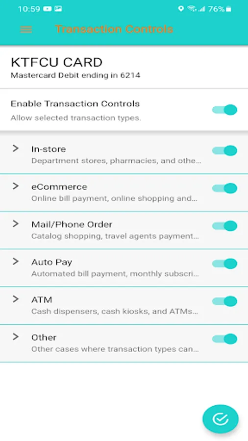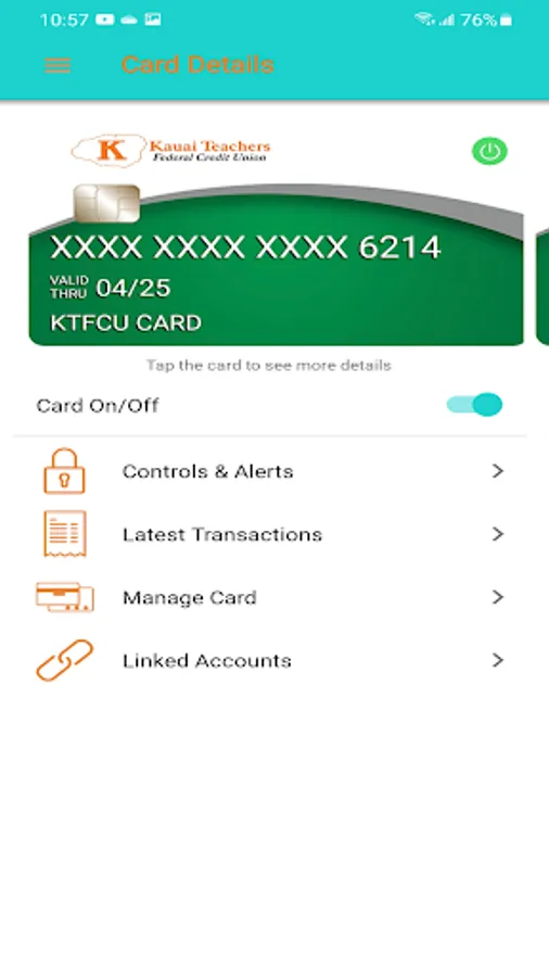 KTFCU SecureCard is an easy-to-use mobile app that gives debit/ATM cardholders the ability to turn on or off their cards in real time, securing accounts when the cards are not in use. Cardholders can set controls for the use of their cards and receive alerts for certain types of card activity, use GPS-enabled location parameters to limit where cards can be used and to block out-of-area attempts, and set and adjust spending limits, adding security and enforcing budget discipline.