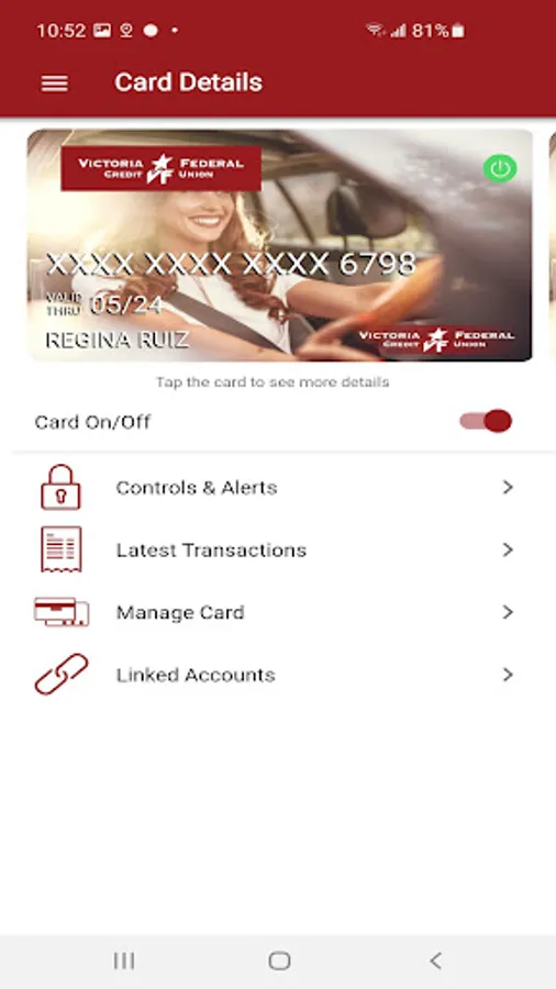 CardNav puts you in control of your debit card usage. CardControl helps you protect your debit cards by sending you the transaction alerts and giving you the ability to define when, where, and how your cards are used. Simply download the CardControl app to your smartphone, then customize your alert preferences and usage settings to monitor and manage your cards.