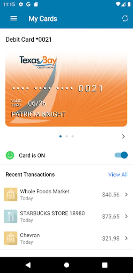Texas Bay Card Control helps you protect your debit and credit cards from fraud by sending you transaction alerts and giving you the ability to define when, where, and how your cards with Texas Bay Credit Union are used. Simply download the Texas Bay Card Control app to your smartphone, then customize your alert preferences and usage settings to monitor and manage your cards.