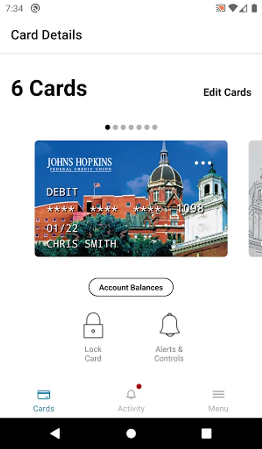 Johns Hopkins FCU's Card Controls app protects your debit and credit cards by sending transaction alerts and enabling you to define when, where and how your cards are used. Download to your device, then set your preferences to monitor and manage your cards within JHFCU's mobile app.