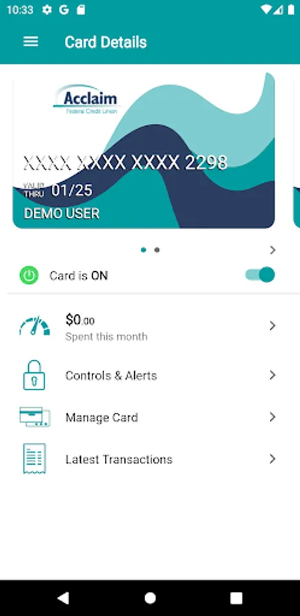 Acclaim FCU CardNav helps you protect your Acclaim debit and credit cards by sending you transaction alerts and giving you the ability to choose when, where and how your cards are used.