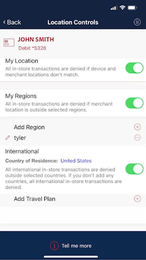 CardControl puts you in control of your debit and credit card usage. CardControl helps you protect your debit and credit cards by sending you transaction alerts and giving you the ability to define when, where and how your cards are used. Simply download the CardControl app to your smartphone, then customize your alert preferences and usage settings to monitor and manage your cards.