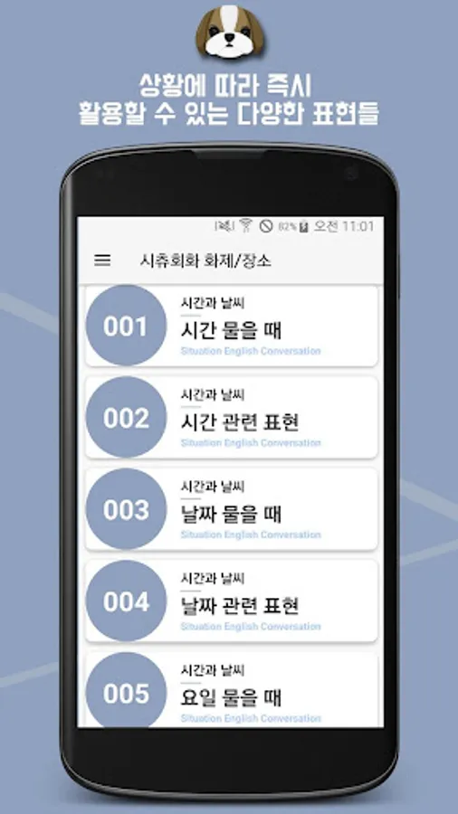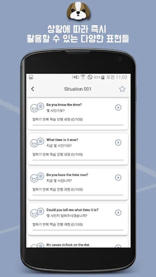 The app is designed so that all sentences can be memorized when reading, listening, writing, and speaking conversations for each situation.