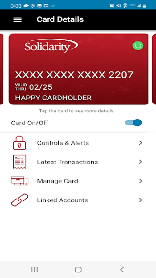 Solidarity FCU Card Controls App allows our members to turn their Debit cards on or off in seconds safely and securely 24/7 in scary circumstances where you don't know where your card is. Stop fraudulent activity before it happens with Alert features. GPS capabilities can either limit where your Debit card is being used, or assure you it can only be used in your presence. Turn your Debit card into an active budget with dollar amount threshold limits with categories and alerts to let you know you've reached your allocations. Manage how, when, and where you use your Debit card while traveling or shopping. Get the power to authorize transactions based on location, transaction type, merchant type, and amount. Set dollar limits for transactions and receive alerts upon reaching those set limits. Get the power to deny a Debit card transaction. Receive Alerts when suspicious activity is suspected. Download SCFCU Card Controls today and utilize it in our Mobile App with your SCFCU mobile banking.