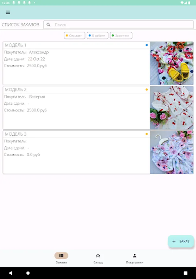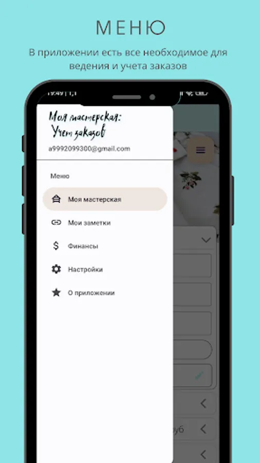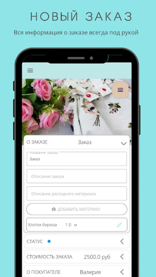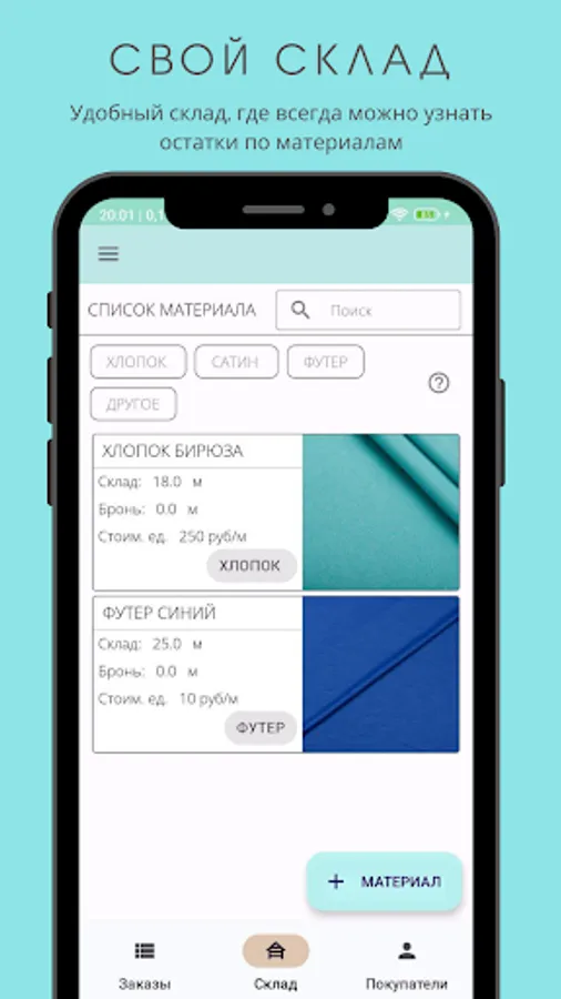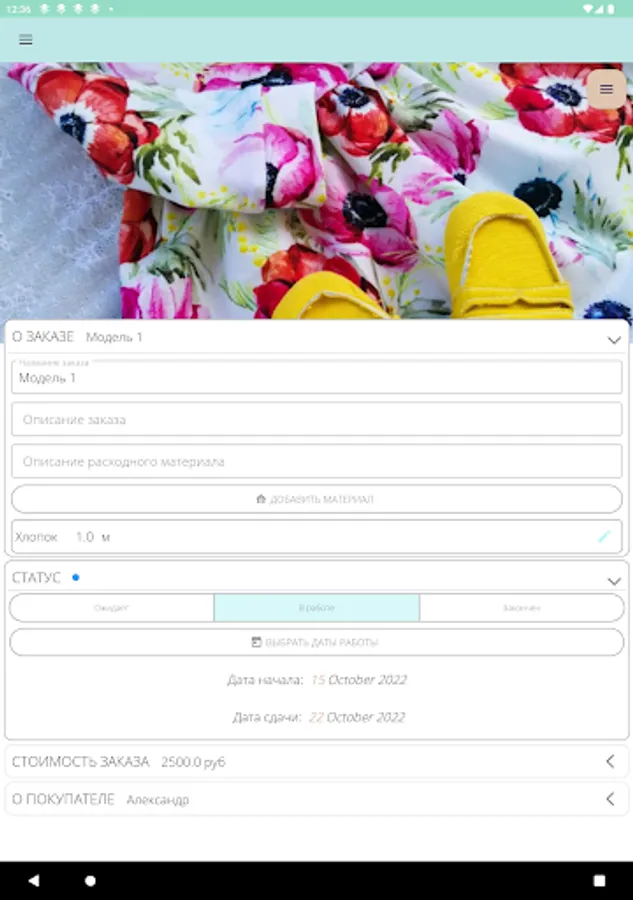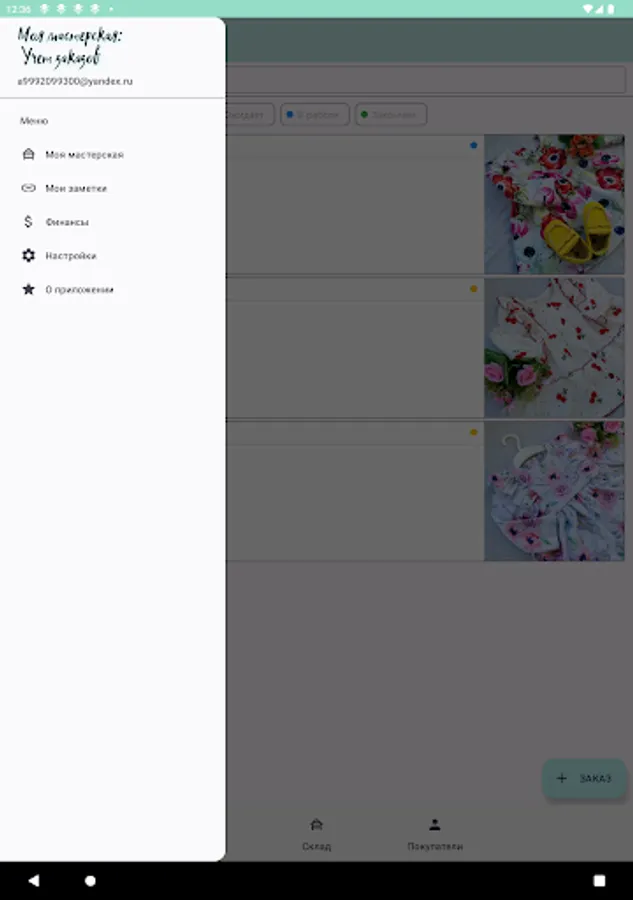 The application was created for order management, material accounting, accounting / consumption, as well as storing useful information. The application will be useful for the self-employed and is primarily aimed at creative people, but it can also be used in other areas such as construction or hobbies.