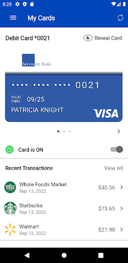 The ServisFirst Bank Card Manager site allows you to access your credit card account, anytime, anywhere with your mobile device. The mobile app is free and easy to use.