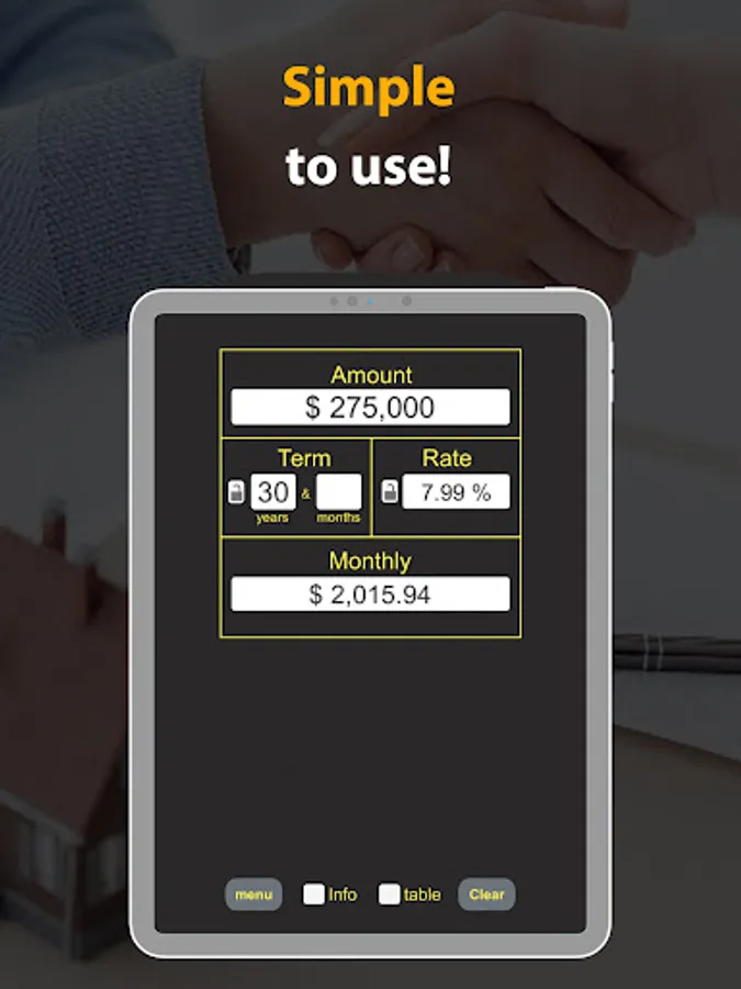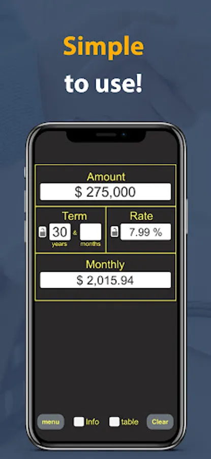 Loan Calc, the ultimate financial tool that can help you make smart financial decisions! With this app, you can quickly and easily calculate your monthly loan payments and see how different loan terms and interest rates can affect your payment amount.
