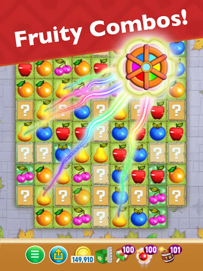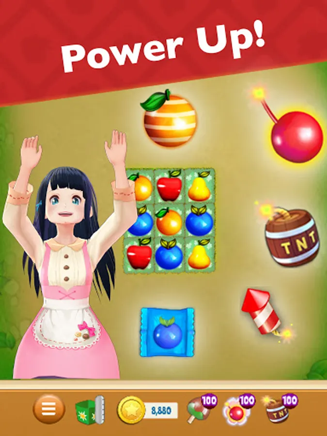 Switch and match Fruits in this fruity puzzle adventure to progress to the next level for that awesome winning feeling! Solve puzzles, and be rewarded with delicious rainbow-colored cascades and delicious fruity combos!
