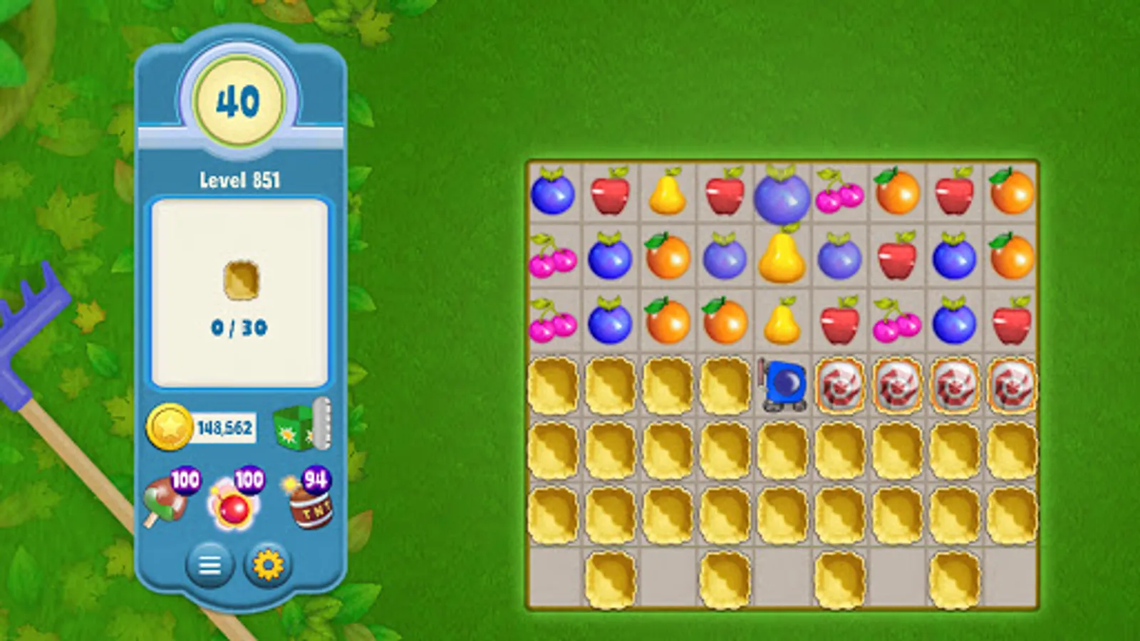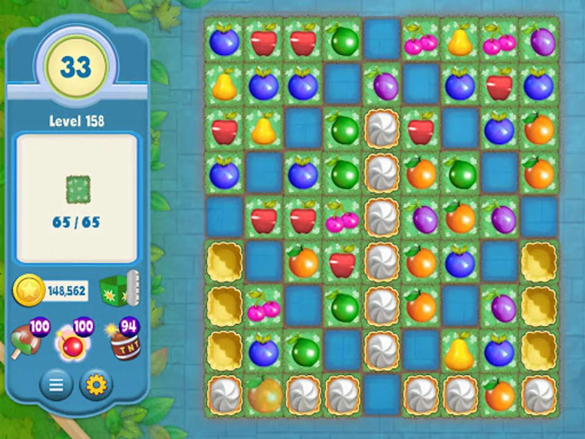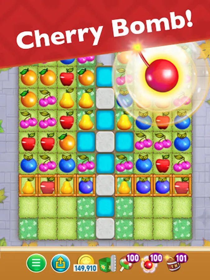 Advance through the game by matching 3 or more fruits in a row, using boosters wisely in order to overcome those extra tricky puzzles!