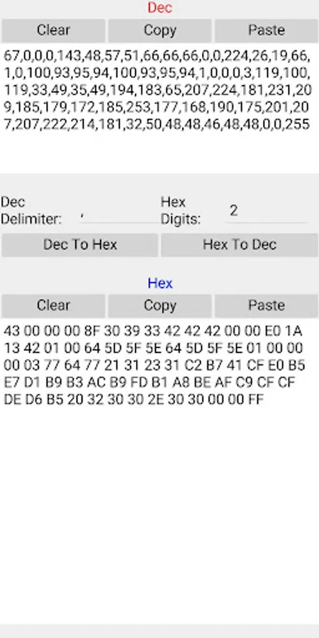 Convert a string of hexadecimal numbers to a string decimal numbers.