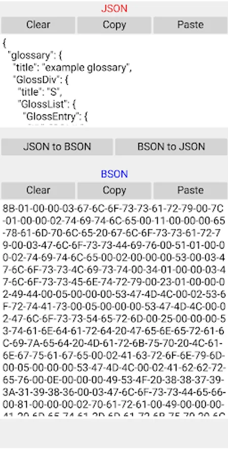 JSON to BSON allows serializing JSON to BSON, and vice versa.
