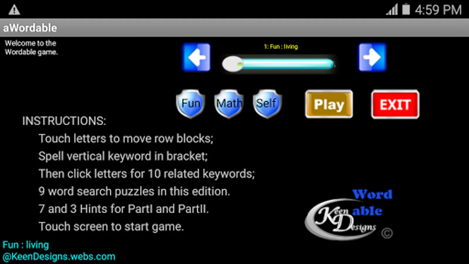 This is dynamic word search game. In a given topic, the first step to the game is to compose a keyword in the given vertical bracket by shifting gjven word groups in the horizontal direction. Helping clues are provided for the less challenging minds. After the correct keyword is made, the player has yet to find 10 more related keywords in the final text grid formation. Keywords could be found by vertical, horizontal and more demanding diagonal association of adjacent letters. Again helping hints (3) are optional. Enjoy this limited edition of interactive puzzles of various topics in the current puzzle game edition.