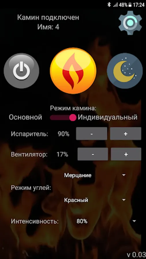 Electric fireplace control program "3D hearth"