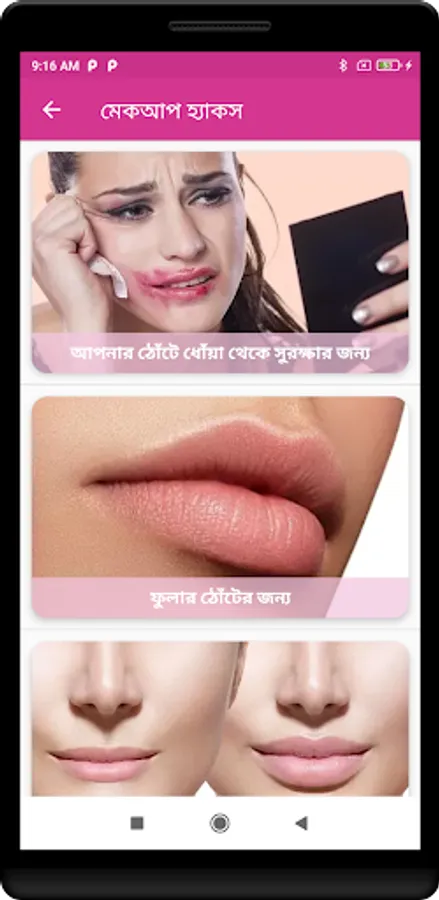 ২. মেকআপ টিপস এবং টিউটোরিয়াল: আমাদের অ্যাপসে আপনি ভিডিও টিউটোরিয়াল দেখে সহজেই পারফেক্ট মেকআপের টিপস এবং প্রক্রিয়া শিখতে পারবেন।