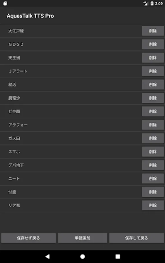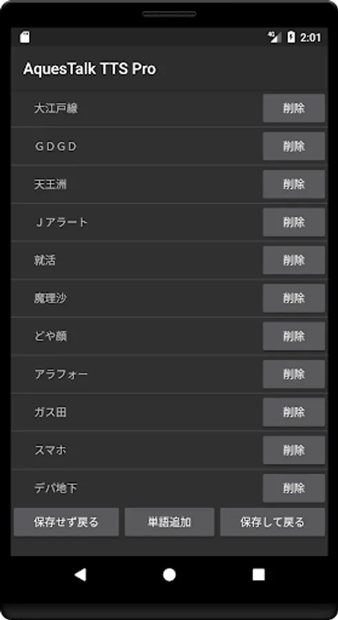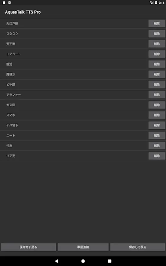 起動しないときは、アプリ画面から「AquesTalk TTS Pro」をタップして起動します。