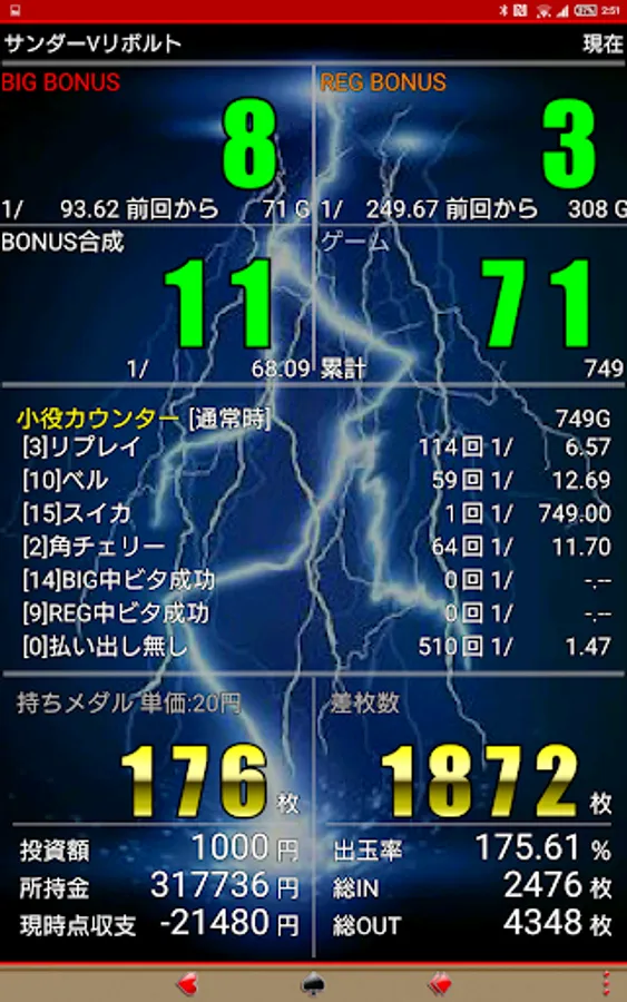 Bonus / jackpot continued number of times, won coin / number of balls of the ongoing