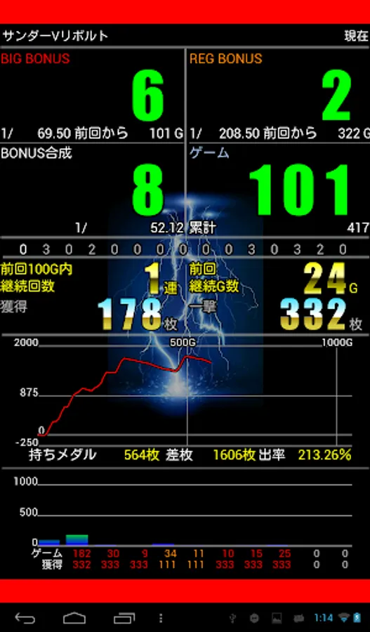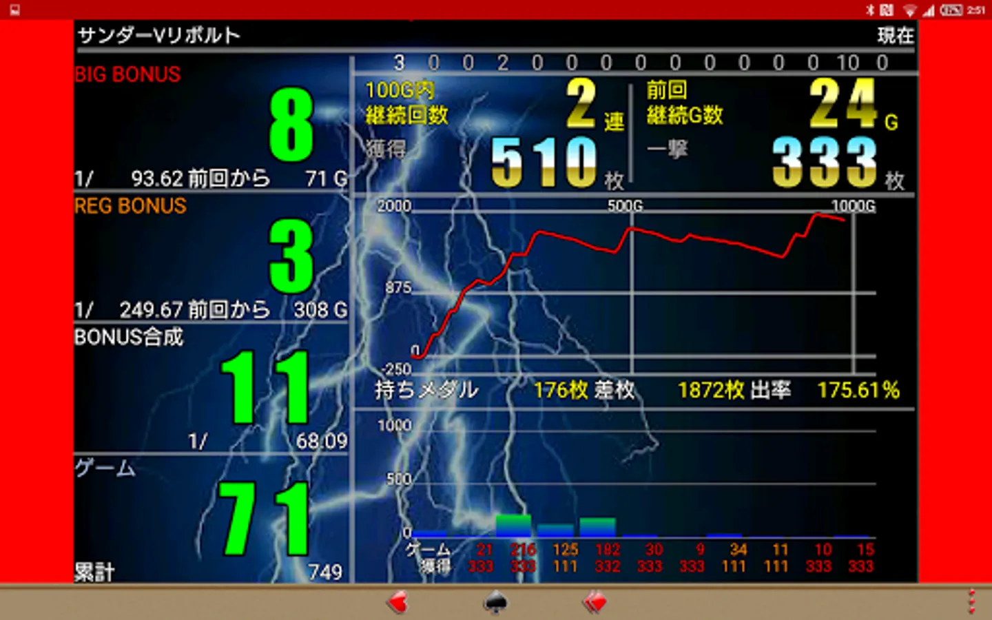 Display the bonus / jackpot history bar graph to the last 10 times. It displays the History dialog by double-tap this part.