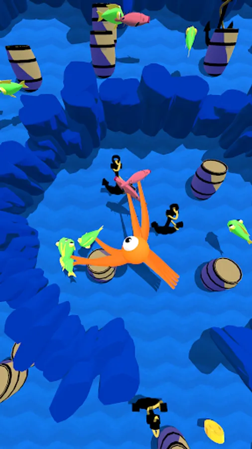You control the squid by swiping you finger. Eat all the fish to win ! Don't get too close to the obstacles !