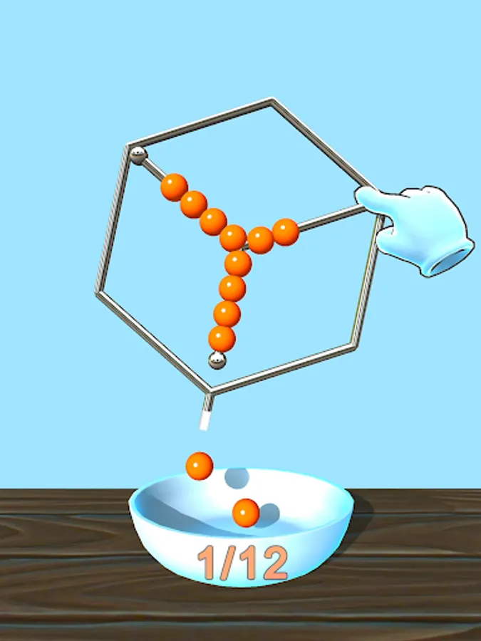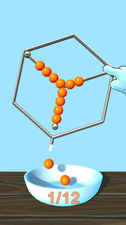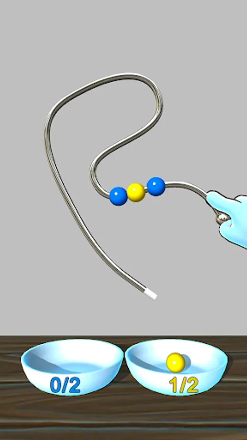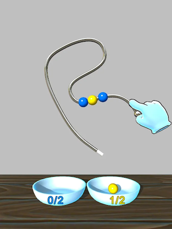 Rotate the level to free the balls from the wires. Don't lose them! They must fall in the right bowl!