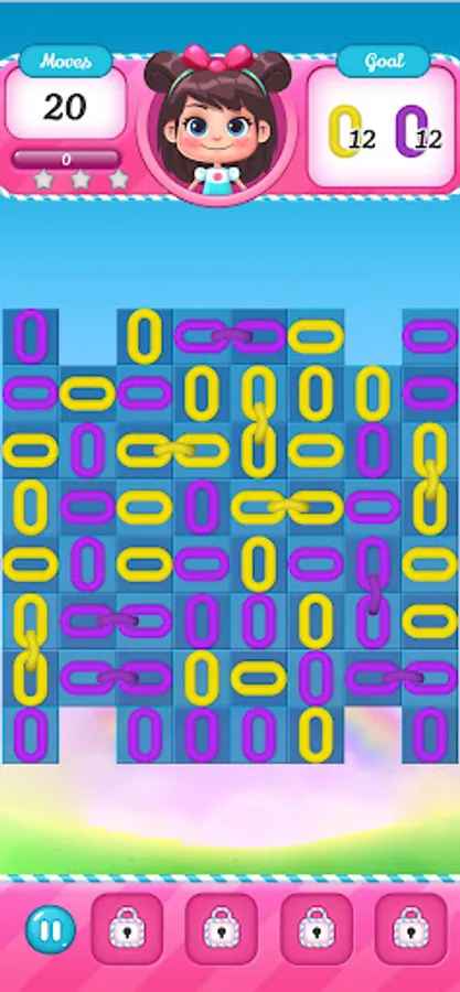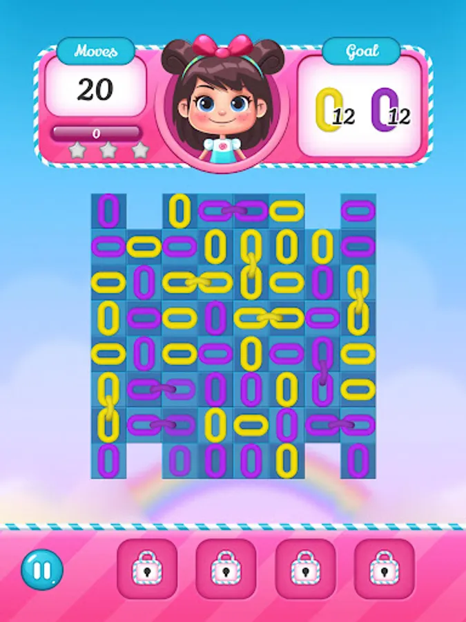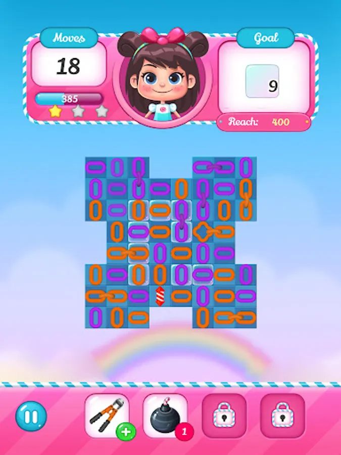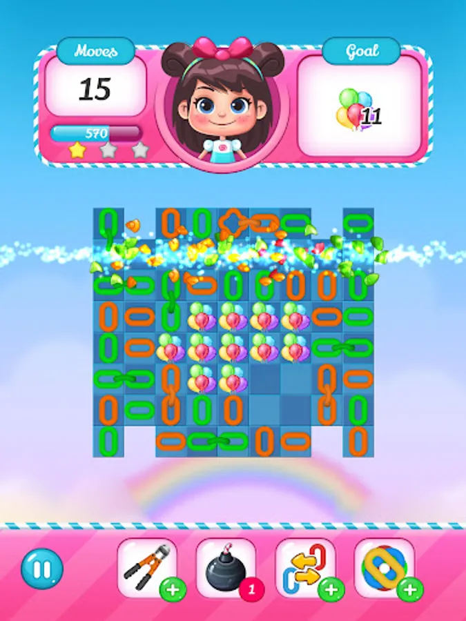 This game features an original match 3 mechanic : turn the links to align them, and destroy the chains to reach each level goal!