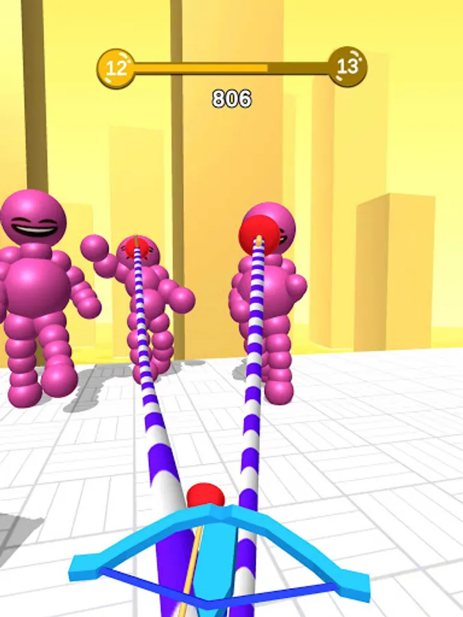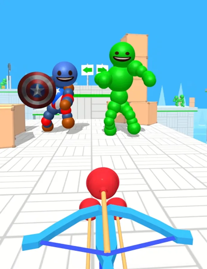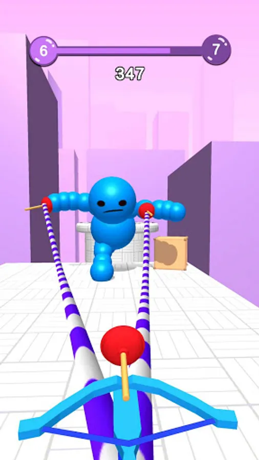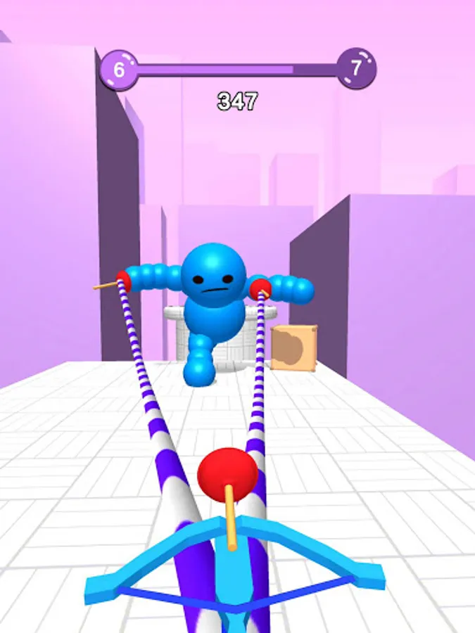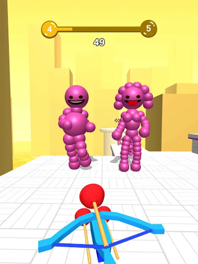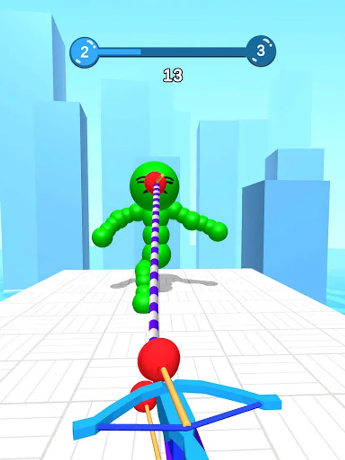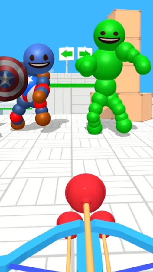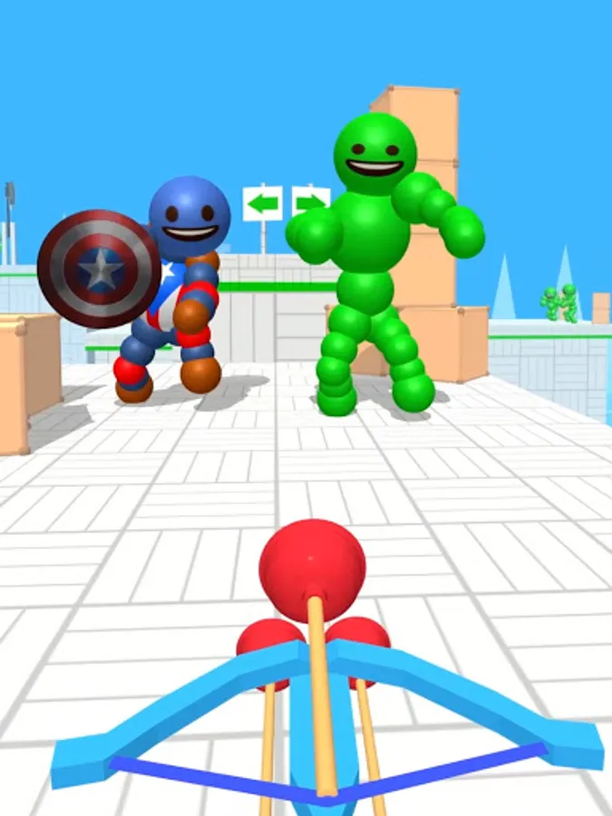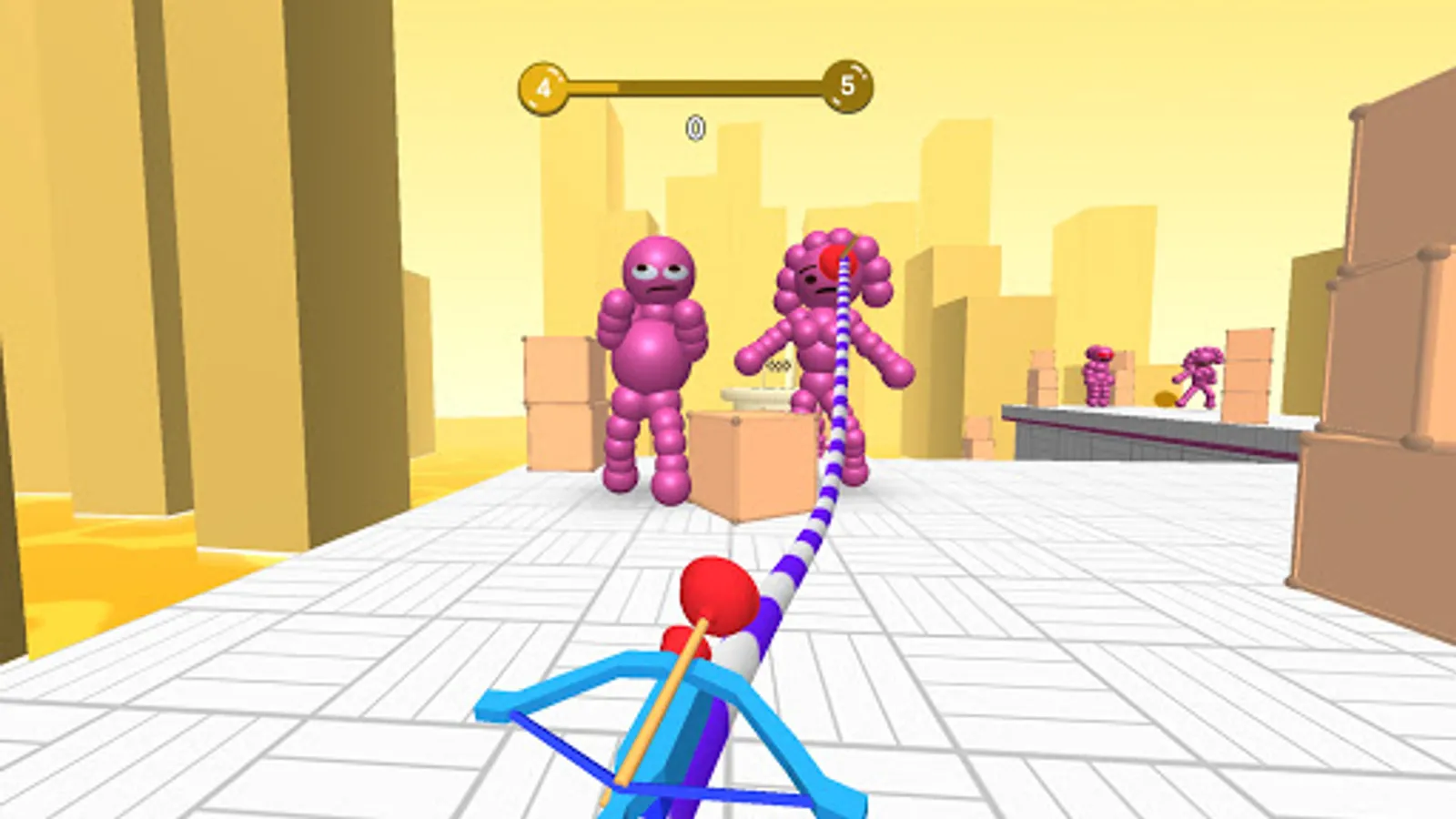 Jump from building to building and shoot the giants to pull them and make them break part by part.