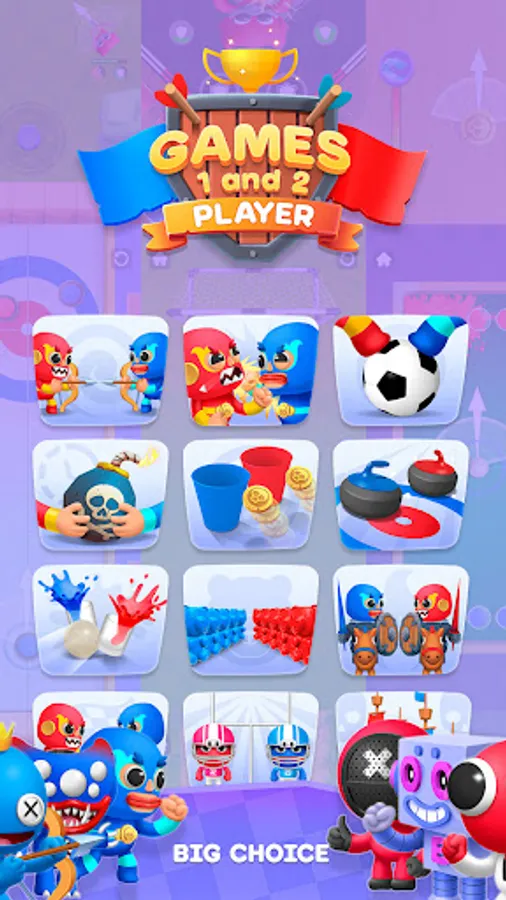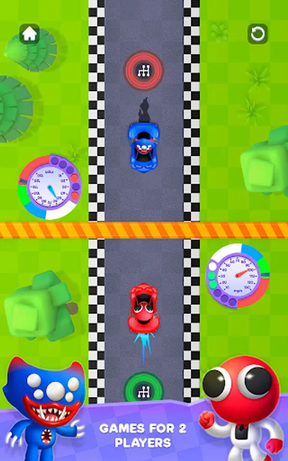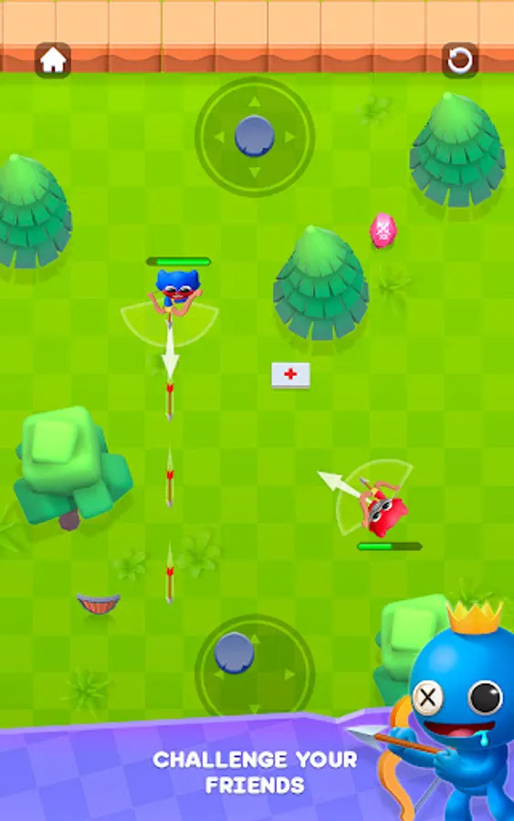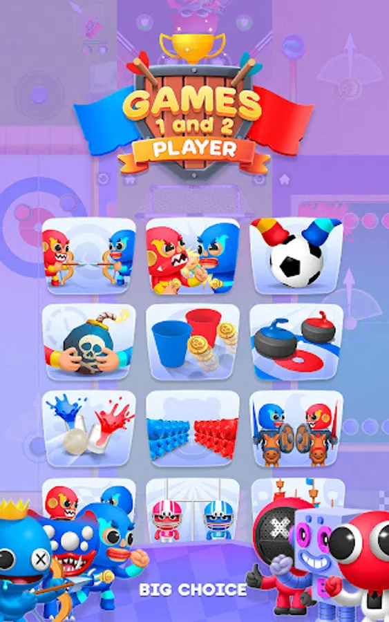 The collection of mini-games contains: magnificent curling, splatyard billiards, jumping coins, incredible drag racing, exciting fighting, well-aimed archer archers, brave knights, mega football and merciless marmalade bears. All mini-games are in our colorful style with your favorite characters like Huggy, Among and Rainbow Friend.