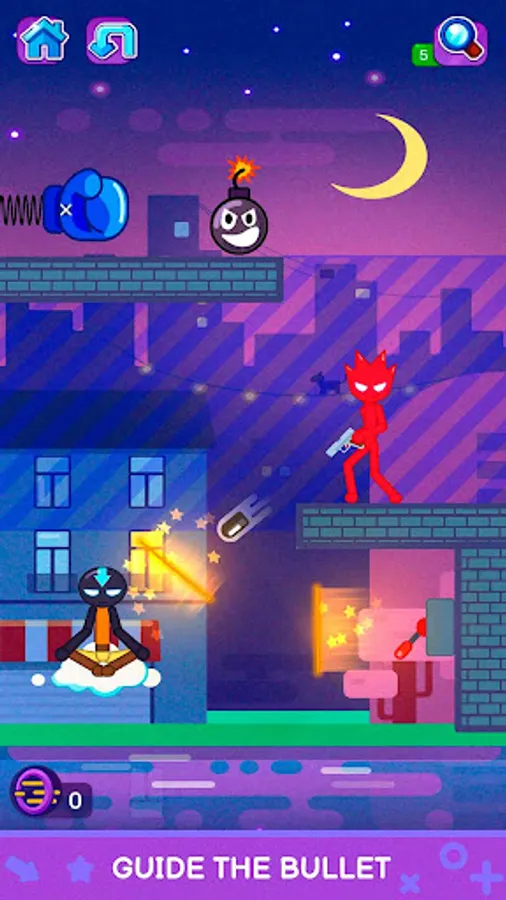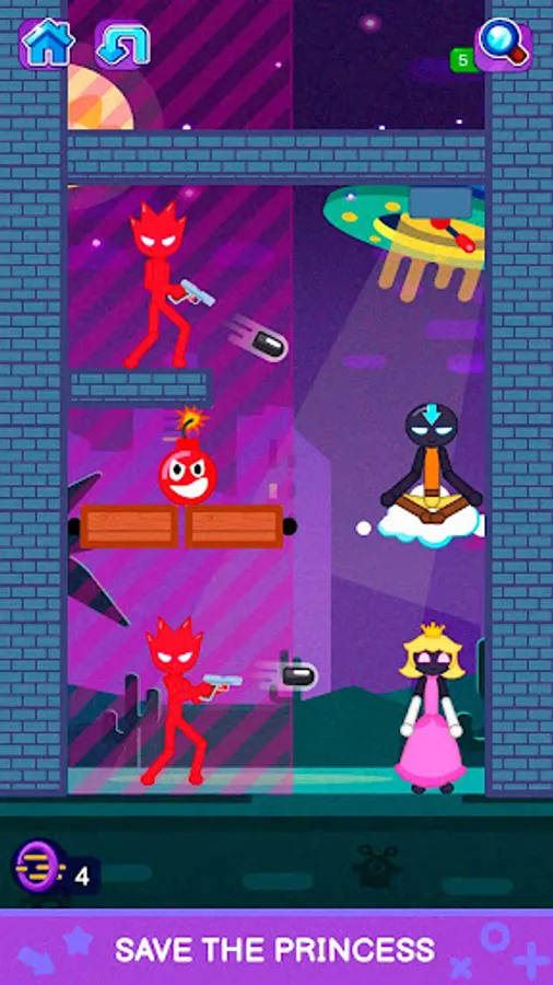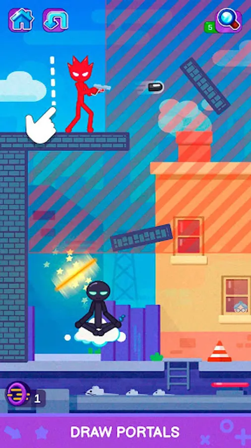 Punish the evil villains who want to kill you, kidnap princesses and don't like cats. Draw lines of magical portals and bullets will pass through them. Solve puzzles so that Mr. Bullet returns to the stickman.