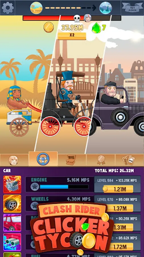 Join the journey through the era! Collect and pump the legendary vehicle. Dozens of epochs and characters of opponents of different factions are waiting for you! Go through the whole evolution people and the world through epochs starting with primitive man. Become the most legendary racer known to the whole world!