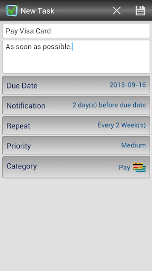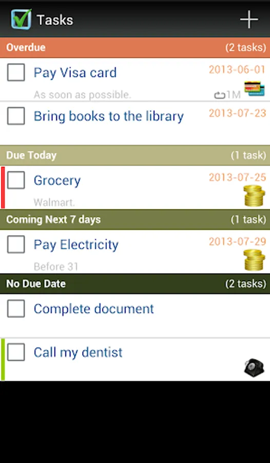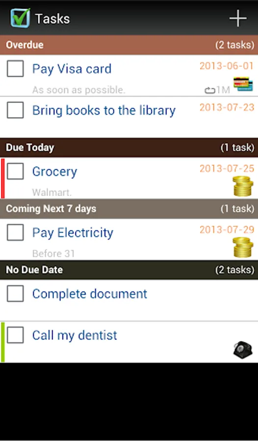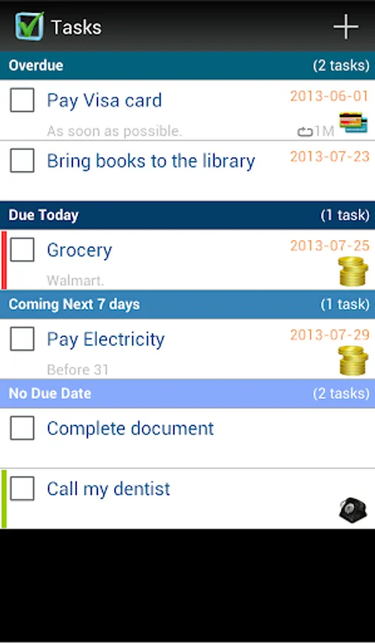 - Sort/Group feature: by due date, by category, by priority & by task name.