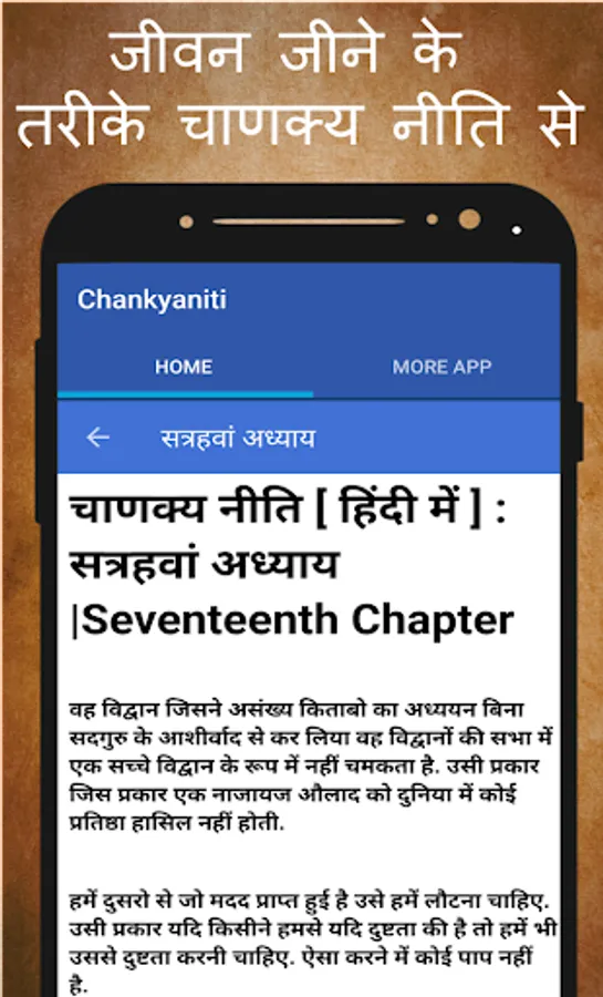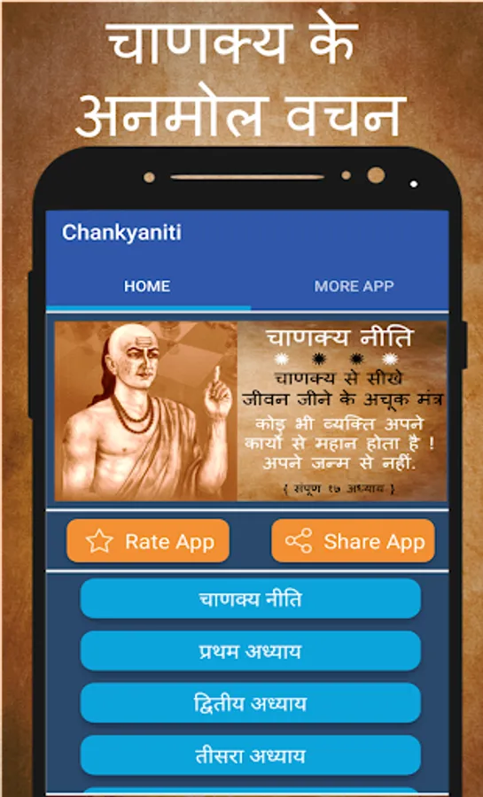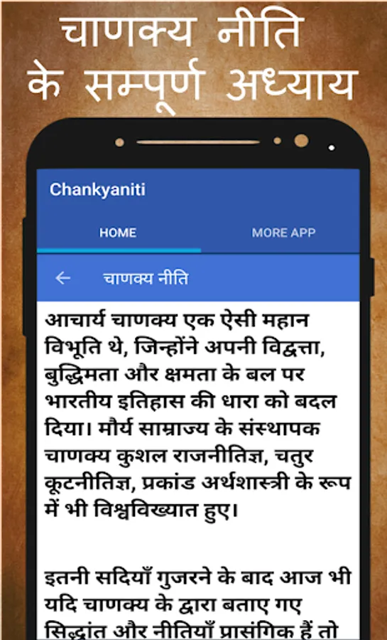 This App संपूर्ण चाणक्य निति - Chanakya Niti in Hindi Full Brings You Full And Complete Quotes & Vichar From Chanakya Niti For Making Your Life Better.