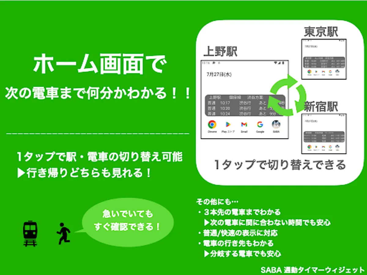 ・You can check the countdown of departures up to 3 ahead with the widget.