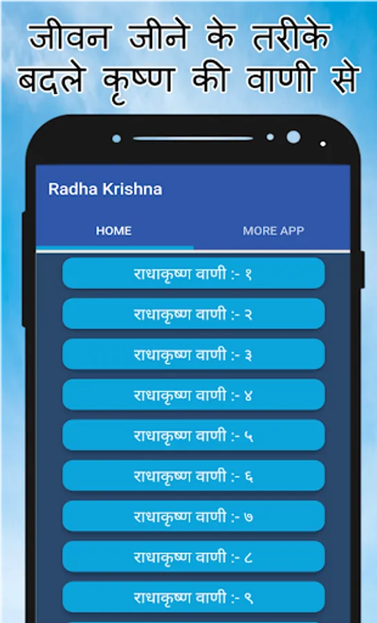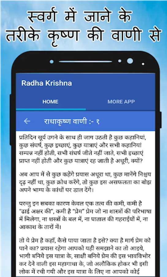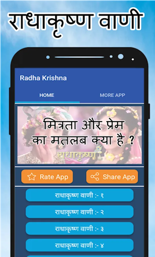 Radha Krishna Vani in Hindi language Writing App. Radha Krishna Vani All vani in Available in this app For hindi language this app is special for radhakrishna lovers and Serial. This Application in Krishna all chapter in copy for Radha krishna tv shows. And Best Radhe Krishna wallpaper and sticker with Description.
