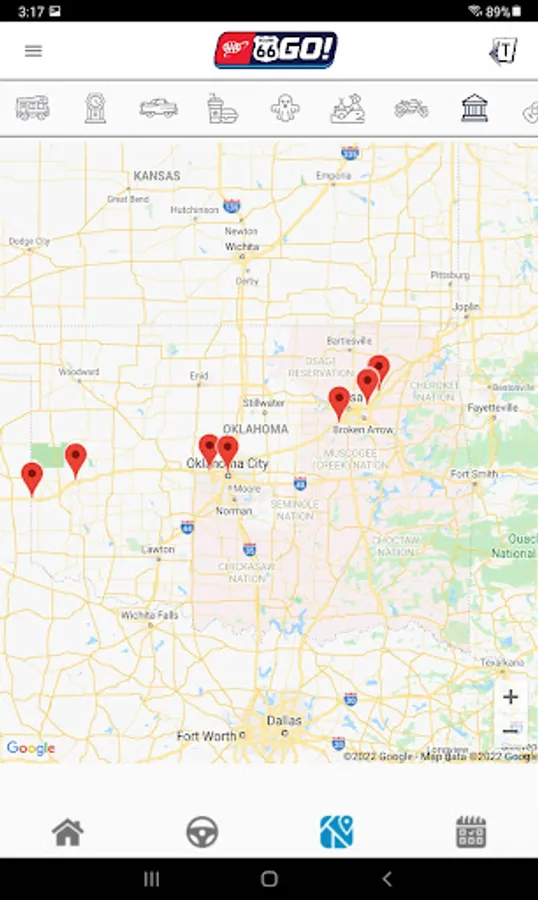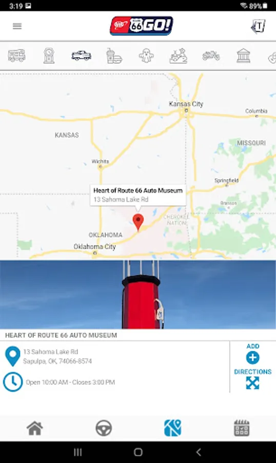 • Explore an interactive map of Route 66 attractions in Oklahoma