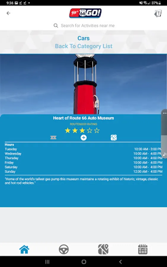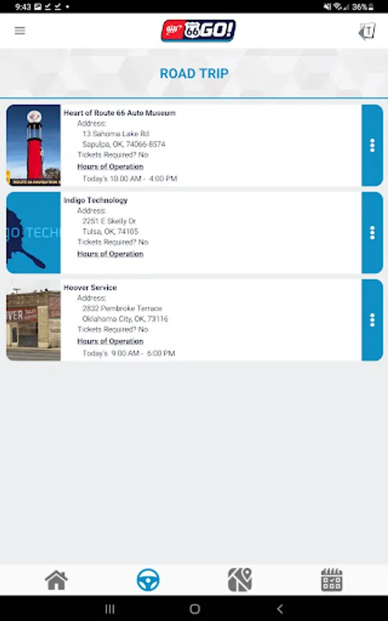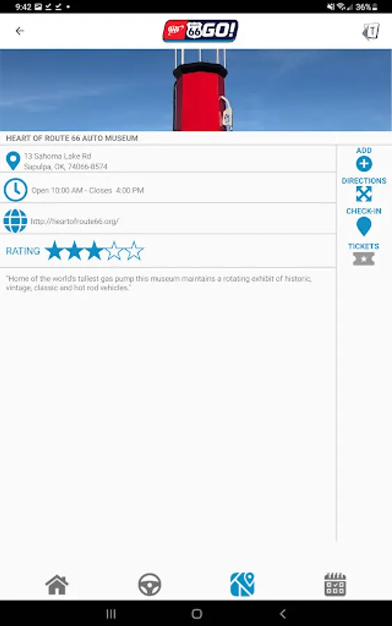 • Share ratings on Route 66 attractions in Oklahoma to assist other app users