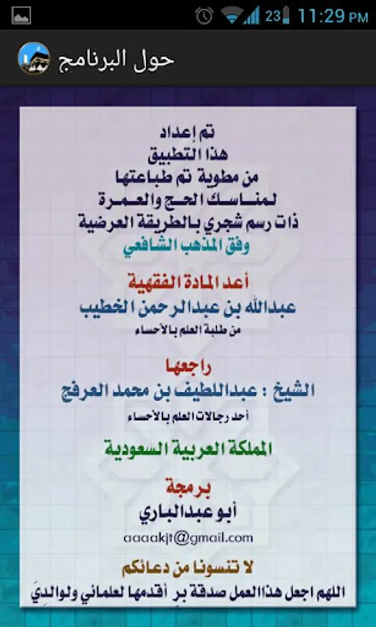 تم بحمد الله تعالى وتوفيقه الانتهاء من تطبيق مخطط مناسك الحج والعمرة وهو مأخوذ من مطوية مطبوعة منشورة