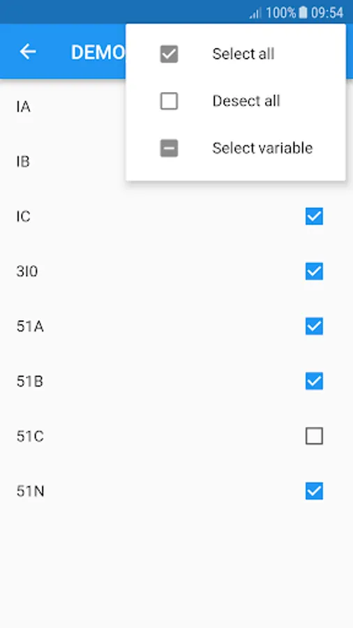5. Choosing channels to show on display, possibility to choose only channels with variable values.