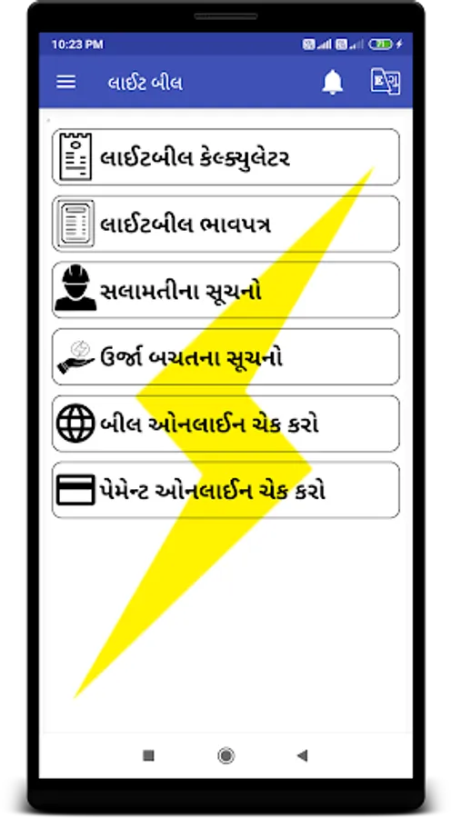 - આ એપ્લીકેશમાં છેલ્લું ભરેલ લાઈટ બીલ ઓન લાઈન ચેક કરી શકાય છે.