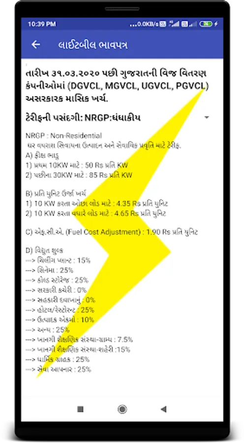 - આ એપ્લીકેશનમાં રેટ કાર્ડ છે જ્યાં બધી ટેરીફની બધી માહિતી આપવામાં આવેલ છે.