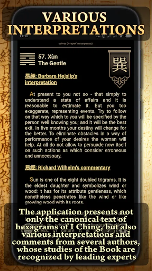 • The articles in the application will help you in studying I Ching and will allow you to more deeply understand the meaning contained in its texts.