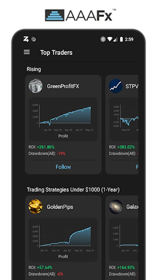 Get the app and manage your AAAFx investment account anywhere, anytime, gaining access to place orders in Forex instruments, Commodities and Indices, review your trading history, Auto-trade with the experts, backtest your strategies and many more.