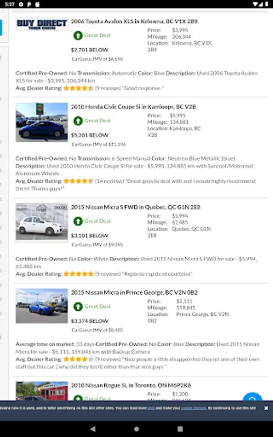 Used Cars Canada is best App for Buy and Sell used Cars. The App is in list view layout with list of all best used car sites with beautiful graphics. The list of sites and categorized with site name and beautiful icon for better understanding of user. By selecting from the list, User will redirect to the site page in easy and simple way to find used car and after working on same the user can back to the main app activity with back button and can select new item of anyone's choice and so on. it is very simple and easy to use to access all sites in single activity to save user's time and mobile space.