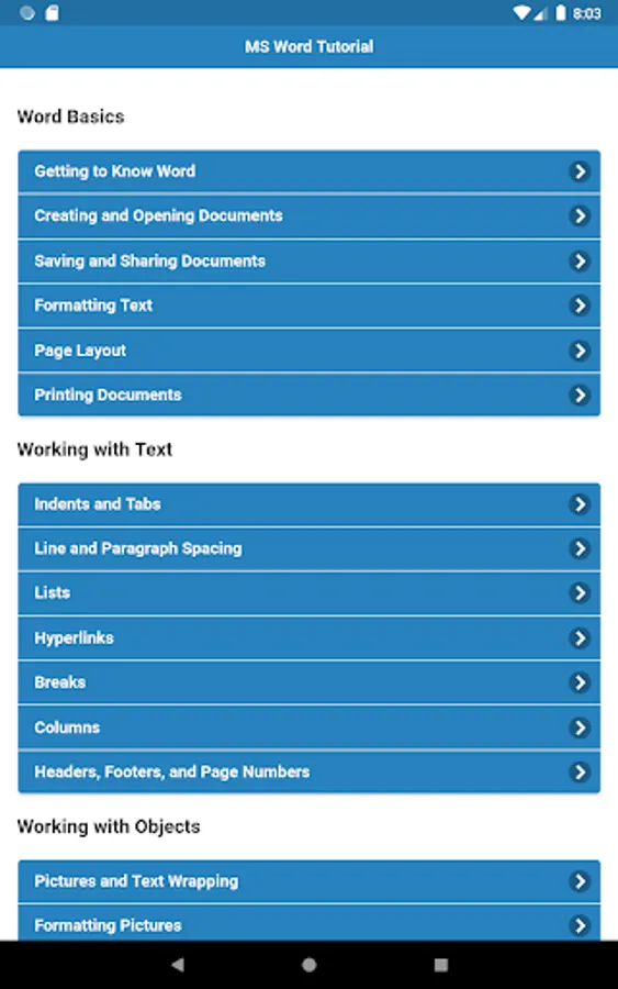 Tutorial for MS Word app provides basic and advanced concepts of Word. This app is designed for beginners and professionals. Download the app and start learning Microsoft Word today.