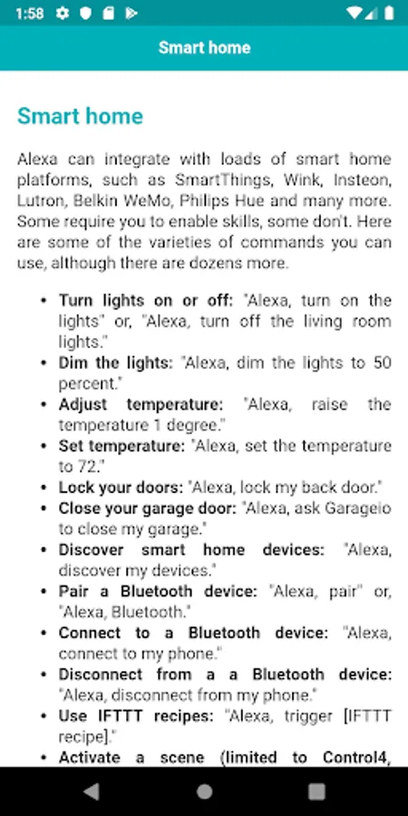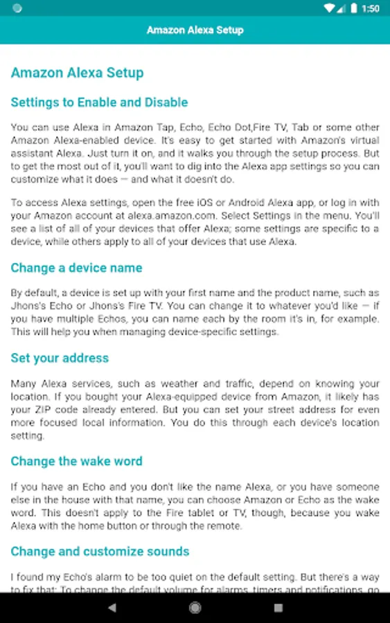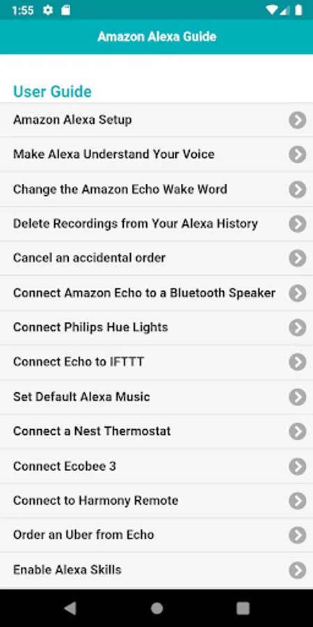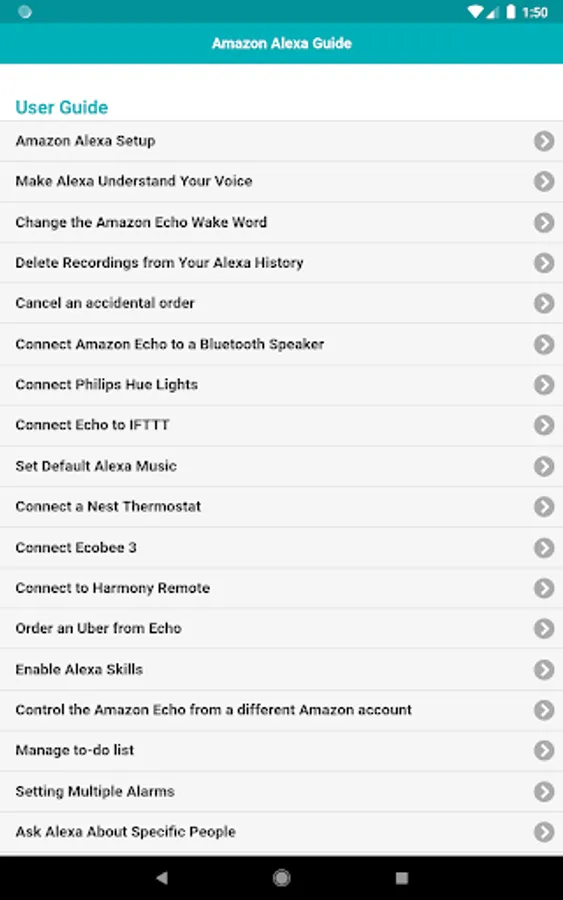 User guide for Amazon Alexa. Learn essential tips, tricks and voice commands. From this app you will able to know about essential skills for Alexa, their usage and how to use them.